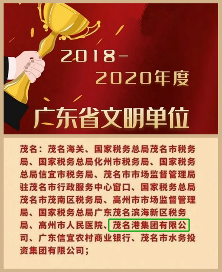 近日,廣東省精神文明建設(shè)表彰大會在廣州隆重舉行。作為成立僅八年多時間的市屬國有企業(yè),茂名港集團(tuán)榮獲廣東省2018-2020年度文明單位稱號。