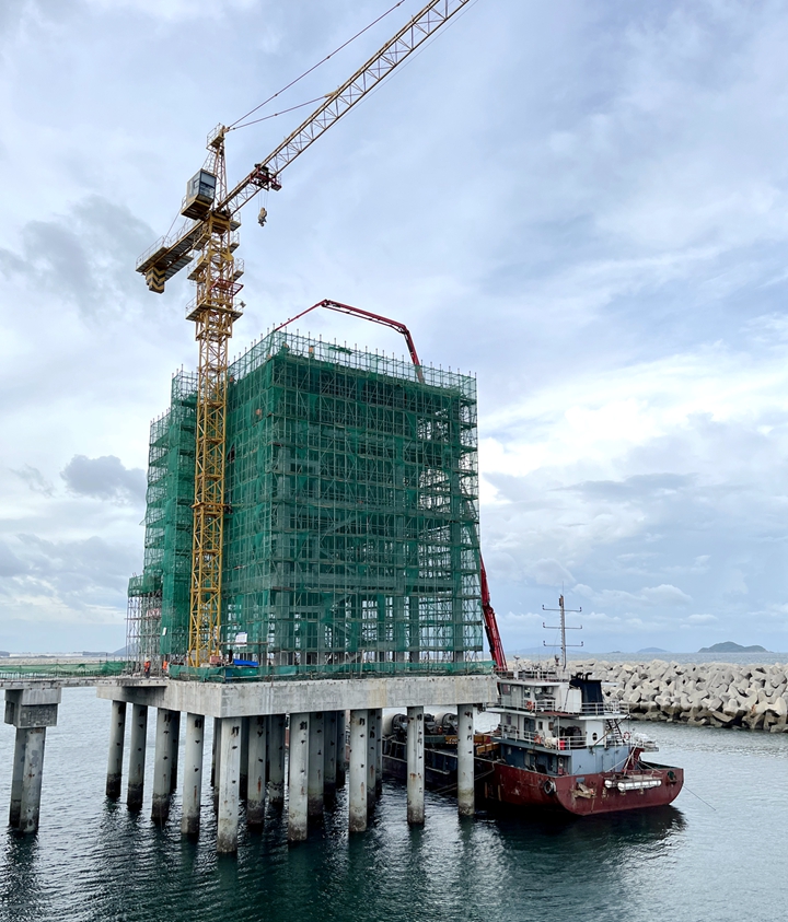 博賀新港區(qū)油品碼頭項目2#工作樓喜封金頂