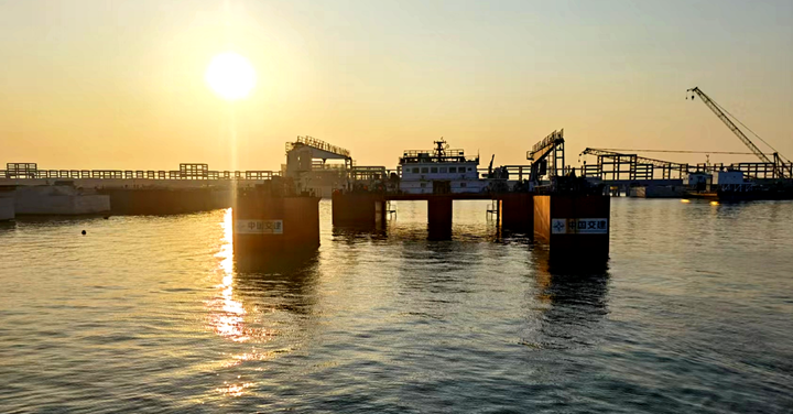 本項(xiàng)目52個(gè)沉箱全部一次順利安裝完成,提前完成重要節(jié)點(diǎn)計(jì)劃,為下一步碼頭上部結(jié)構(gòu)的施工提供了工作面,也為下一節(jié)點(diǎn)目標(biāo)的如期建設(shè)創(chuàng)造了良好條件。(古智斤) |