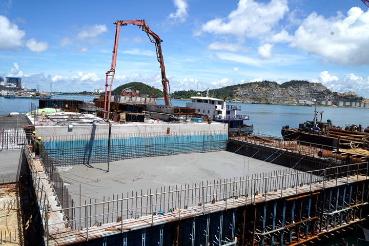 ▲東區(qū)化工碼頭項目胸墻澆筑作業(yè) 集團(tuán)當(dāng)前在建的10萬噸級成品油碼頭、東區(qū)化工碼頭等碼頭泊位建設(shè)進(jìn)入沖刺階段,認(rèn)真貫徹市委市政府關(guān)于加快口岸開放工作的要求,計劃今年竣工驗收;茂名港務(wù)中心已完成主體結(jié)構(gòu)施工,計劃今年建成投用,將為濱海新區(qū)樹立嶄新地標(biāo);30萬噸級原油碼頭報批報建工作取得重大突破,項目岸線申請獲得國家交通運輸部批復(fù),前期工作不斷加快推進(jìn),即將進(jìn)入實質(zhì)性實施階段,現(xiàn)代化深水大港的畫卷徐徐展開。 挖潛增效,劃轉(zhuǎn)老國企扭虧為盈,實現(xiàn)國有資產(chǎn)保值增值。