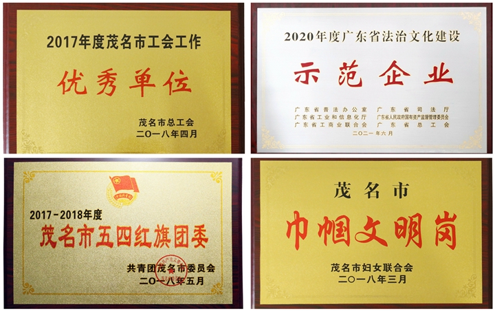 ▲集團(tuán)榮譽獎牌(摘選) 幾年來,集團(tuán)工會榮獲“茂名市工會工作優(yōu)秀單位”稱號,集團(tuán)財務(wù)部女職工榮獲“茂名市巾幗文明崗”稱號;集團(tuán)團(tuán)委成立青年志愿者服務(wù)隊,助力雙創(chuàng)工作,連續(xù)三年榮獲“茂名市五四紅旗團(tuán)委”稱號。集團(tuán)憑借系列企業(yè)文化建設(shè)成果,先后榮獲 “中國企業(yè)文化建設(shè)典范企業(yè)”“廣東省先進(jìn)集體”“廣東省優(yōu)秀企業(yè)”“廣東省企業(yè)文化建設(shè)最佳實踐單位”“廣東省法治文化建設(shè)示范企業(yè)”等榮譽,被譽為茂名市屬國有企業(yè)的標(biāo)桿與典范。 結(jié)語 十年積跬步,足下至千里。回眸十年的非凡征程,茂名港人矢志艱苦奮斗,勇于擔(dān)當(dāng)作為,爭當(dāng)茂名向海而興排頭兵,在茂名經(jīng)濟(jì)發(fā)展史上留下堅實的足印。