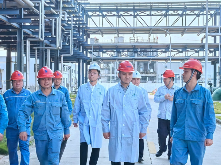 在實華公司副總經(jīng)理劉一輝、安全總監(jiān)梁培松及湛江實華公司總經(jīng)理藍建成陪同下,王志華在湛江實華深入辦公區(qū)、化驗中心、中控室、裝卸區(qū)、碳九裝置和雙氧水裝置現(xiàn)場,查看、了解生產運行情況,并與湛江實華經(jīng)營班子、一線生產人員進行親切交流。