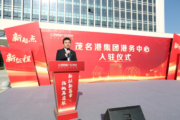 王志華致辭中表示茂名港集團(tuán)作為茂名港博賀新港區(qū)的建設(shè)和運(yùn)營(yíng)主體,一直以來都想把“家”安在港口,安在這片茂名港人揮灑汗水、奉獻(xiàn)青春的熱土上。此次集團(tuán)搬遷入駐港務(wù)中心,不僅是對(duì)集團(tuán)辦公環(huán)境的一次重大升級(jí),更是我們?cè)凇跋蚝6d、向海圖強(qiáng)”發(fā)展道路上的重要一步。他表示,未來茂名港集團(tuán)將利用好港務(wù)中心的現(xiàn)代化辦公條件和臨港地理優(yōu)勢(shì),進(jìn)一步加強(qiáng)港口建設(shè)和運(yùn)營(yíng)管理,為助推茂名產(chǎn)業(yè)發(fā)展提供重要的港口物流支撐,共同譜寫茂名港建設(shè)發(fā)展的新篇章!