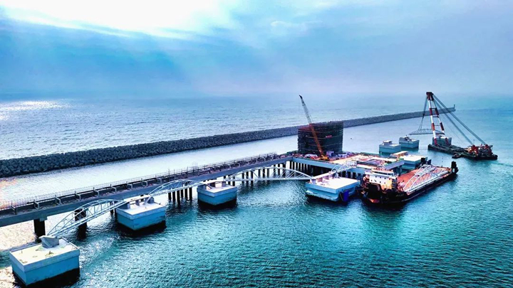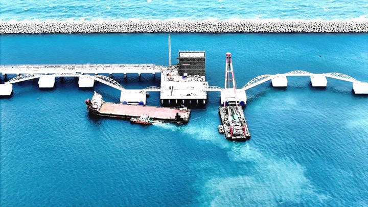 在新年伊始的奮進(jìn)號(hào)角中,茂名港30萬噸級(jí)原油碼頭工程于2月23日全面完成了鋼聯(lián)橋安裝施工,標(biāo)志著項(xiàng)目建設(shè)完成關(guān)鍵新節(jié)點(diǎn)。這一重要突破為30萬噸級(jí)原油碼頭工程新年開好局、起好步奠定了堅(jiān)實(shí)基礎(chǔ),也為加快項(xiàng)目建設(shè),保障工程如期竣工注入了強(qiáng)勁動(dòng)力。