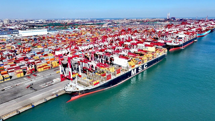 在建成全國首座全國產(chǎn)全自主自動化碼頭基礎上,青島港加速智慧港口迭代升級,推動人工智能應用中試基地成果轉(zhuǎn)化。今年以來,持續(xù)優(yōu)化、推廣自主研發(fā)的A-TOS(碼頭智能管控系統(tǒng)),13次刷新自動化碼頭裝卸效率世界紀錄;推進傳統(tǒng)碼頭自動化改造,通過研發(fā)碼頭智能體、攻關自動化裝卸關鍵技術(shù),實現(xiàn)全場景、全流程、全機種自動化,助力集裝箱、紙漿、鐵礦石、糧食等貨種接連打破效率紀錄;打造“云港通”口岸線上服務平臺,實現(xiàn)“關港通”智慧查驗,應用全球首個港口服務大模型方舟TaaS,進一步提升了裝卸作業(yè)的服務體驗和決策效率。 智慧港口效率的提升離不開海關監(jiān)管服務的升級保障。青島海關充分發(fā)揮山東港口青島港在‘一帶一路’中的陸海互聯(lián)優(yōu)勢,推廣“先期機檢”“抵港直裝”“船邊直提”等自動化作業(yè)模式,通過升級升級智能空軌、集裝箱順勢核重等智能化設施設備,將海關監(jiān)管無縫嵌入港口生產(chǎn)作業(yè),實現(xiàn)了海關與港口物流信息交互,為外貿(mào)企業(yè)打造了一條綠色、高效的出海物流通道。
