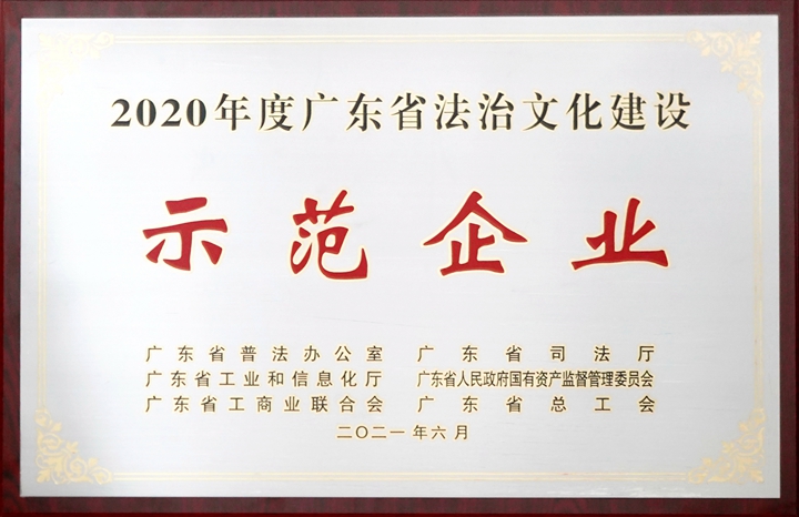 • 2020年度廣東省法治文化建設(shè)示范企業(yè)