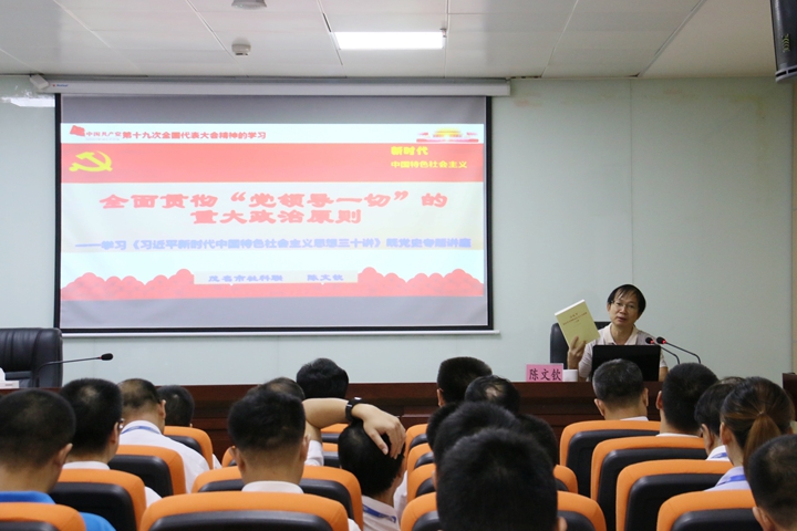 為推動進一步深入學(xué)習(xí)貫徹習(xí)近平新時代中國特色社會主義思想,根據(jù)市委宣傳部的通知要求,7月27日,茂名港集團組織舉辦《習(xí)近平新時代中國特色社會主義思想三十講》專題宣講報告會,邀請市委宣講團成員、市社科聯(lián)專職副主席陳文欽到會作專題輔導(dǎo)。集團領(lǐng)導(dǎo)羅大方、肖炳璋、楊超燦,以及集團機關(guān)各部室、下屬企業(yè)黨員干部近百人參加了宣講會。