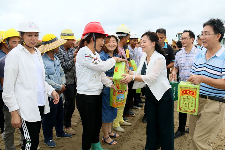 8月13日下午,市人大常委會(huì)副主任、市總工會(huì)主席黃奕奕率市總工會(huì)工作人員走進(jìn)茂名港集團(tuán)項(xiàng)目建設(shè)工地,開展“關(guān)愛職工 夏送清涼”活動(dòng),為一線職工送上王老吉、菊花茶、冰糖雪梨等清涼降暑物資。茂名港集團(tuán)黨委書記、董事長劉乃英,集團(tuán)黨委副書記、工會(huì)主席肖炳璋陪同慰問。