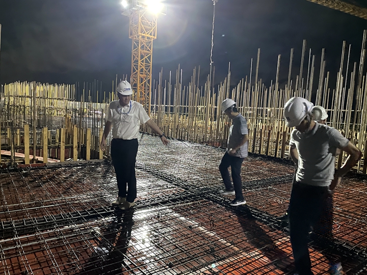 梁板的澆筑必須進行連續(xù)施工方能保證質(zhì)量。由于施工作業(yè)面廣、作業(yè)時序長,茂名港務(wù)中心項目經(jīng)理部組織參建單位作了充分的施工交底,進行了作業(yè)前各前置工序的復查,要求保質(zhì)保量完成每一道施工工序,并強調(diào)了夜間作業(yè)安全措施、輪班換班要求;提前與混凝土供應(yīng)商進行溝通聯(lián)系,做足了材料準備,確,F(xiàn)場澆筑工作的連續(xù)性。