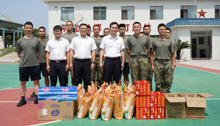 7月30日,根據(jù)集團(tuán)黨委工作部署,集團(tuán)黨委副書記、總裁肖炳璋率隊到蓮頭嶺某部開展“八一”建軍節(jié)擁軍慰問活動,向部隊官兵致以節(jié)日的祝福和誠摯的問候。 慰問中,肖炳璋與官兵們親切交談,詳細(xì)詢問了官兵的日常生活、學(xué)習(xí)和執(zhí)勤訓(xùn)練情況,對他們?yōu)槊?jīng)濟(jì)社會發(fā)展作出的重大貢獻(xiàn)表示衷心感謝和崇高敬意。他表示,茂名港集團(tuán)的快速發(fā)展,離不開駐地部隊的有力支持。集團(tuán)將一如既往地關(guān)心和支持軍隊建設(shè),用心用情用力做好擁軍優(yōu)屬工作。他希望,雙方不斷加強溝通交流,推動軍民融合深度發(fā)展,打造和諧穩(wěn)定的優(yōu)良港口營商環(huán)境,攜手共同應(yīng)對當(dāng)前復(fù)雜的經(jīng)濟(jì)形勢和多重困難挑戰(zhàn),共同譜寫新時代雙擁工作新篇章。