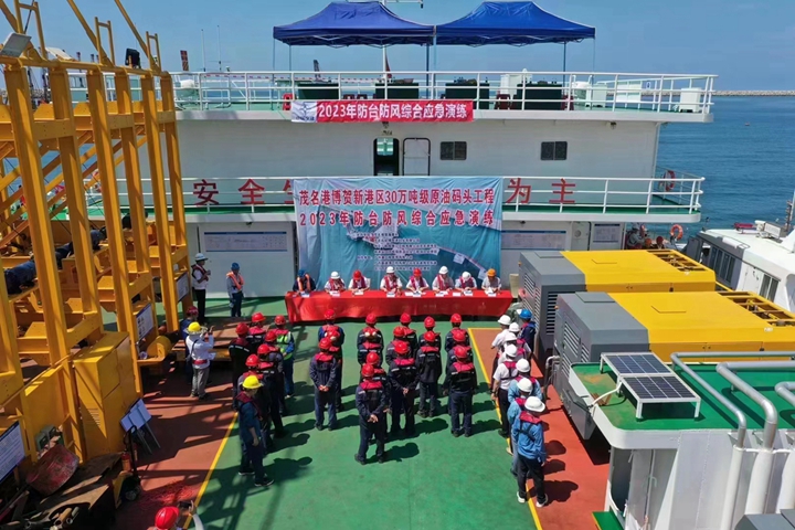 30萬噸級原油碼頭項(xiàng)目經(jīng)理部聯(lián)合市海事局、市海上搜救中心等單位開展防臺防風(fēng)綜合應(yīng)急演練,期間模擬消防救火、人員落水搶救、溢油處置等情景進(jìn)行處置,強(qiáng)化合作,鍛煉隊(duì)伍,有效提高“三防”應(yīng)急處置能力;