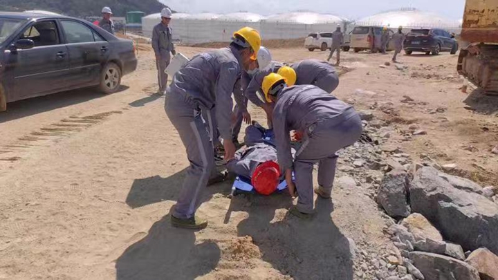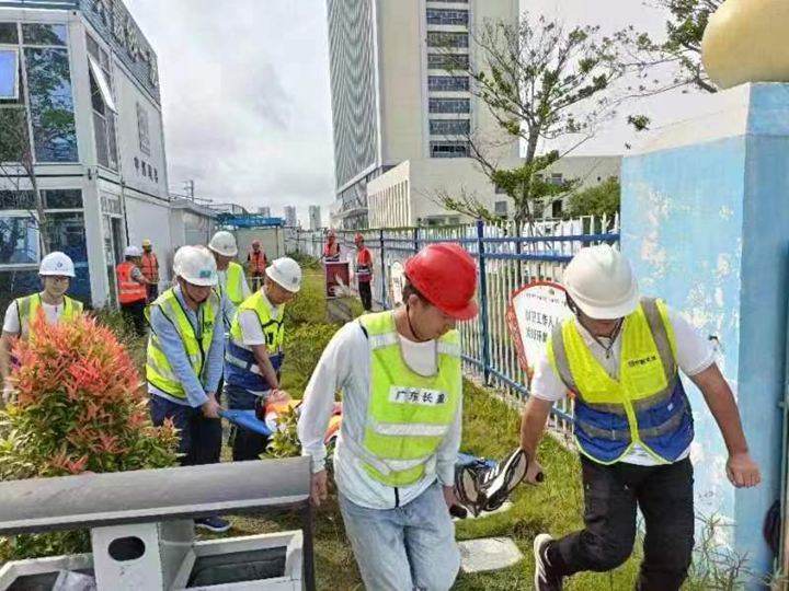 港務(wù)中心項(xiàng)目經(jīng)理部進(jìn)行防觸電專項(xiàng)演練,組織得力,救護(hù)合理;