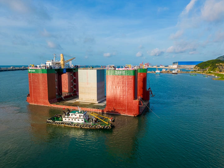 “沉箱已成功上駁就位!”隨著對(duì)講機(jī)中激動(dòng)的聲音響起,茂名港博賀新港區(qū)30萬(wàn)噸級(jí)原油碼頭項(xiàng)目首個(gè)沉箱成功出運(yùn),標(biāo)志著該項(xiàng)目正式進(jìn)入主體建設(shè)新階段。