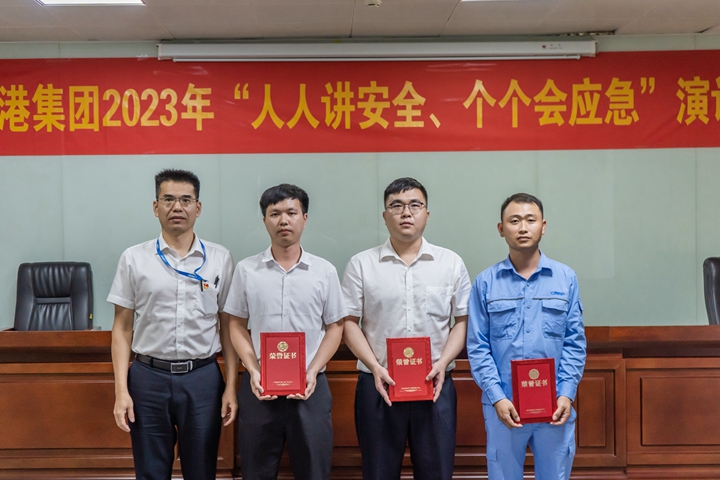 ▲長興石化公司蔡升高、李俊毅、何雄勝,濱?毓晒窘窈、港口經(jīng)營公司張斯瑜榮獲三等獎(jiǎng) 比賽期間還進(jìn)行安全生產(chǎn)知識(shí)有獎(jiǎng)?chuàng)尨瓠h(huán)節(jié),觀眾積極踴躍舉手參與,現(xiàn)場(chǎng)氣氛激烈。 蔡光章對(duì)本次“人人講安全、個(gè)個(gè)會(huì)應(yīng)急”演講比賽給予充分肯定。他表示此次演講比賽選手立足本職崗位、結(jié)合工作實(shí)際,多角度多維度闡述對(duì)安全生產(chǎn)工作所感、所悟、所思,詮釋了安全生產(chǎn)的重要意義,營造了“人人講安全、個(gè)個(gè)會(huì)應(yīng)急”濃厚氛圍。他強(qiáng)調(diào),集團(tuán)上下要樹牢安全理念,重視應(yīng)急管理,掌握應(yīng)急救援的基本流程、方法和要求,學(xué)會(huì)自救互救等本領(lǐng),切實(shí)提高突發(fā)事件預(yù)防和應(yīng)急處置能力,為集團(tuán)高質(zhì)量發(fā)展筑牢安全屏障。 本次比賽吸引了集團(tuán)機(jī)關(guān)各部室及下屬企業(yè)代表共50多人到現(xiàn)場(chǎng)觀賽聆聽。