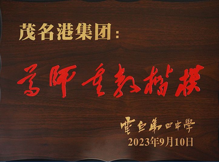 9月27日,茂名市電白第四中學(xué)校長蔣榮昌率領(lǐng)學(xué)校領(lǐng)導(dǎo)班子一行到訪茂名港集團(tuán)博賀新港區(qū)綜合辦公樓,代表學(xué)校全體師生向茂名港集團(tuán)贈送“尊師重教楷!迸曝乙约啊白饚熤亟滔冗M(jìn)單位”榮譽(yù)證書,以感謝茂名港集團(tuán)多年來一直關(guān)心支持濱海新區(qū)教育事業(yè)發(fā)展,為電白第四中學(xué)的教育發(fā)展作出的貢獻(xiàn)。濱?毓晒究偨(jīng)理梁祖釗代表茂名港集團(tuán)受贈,并感謝電白第四中學(xué)全體師生對茂名港集團(tuán)的認(rèn)可。