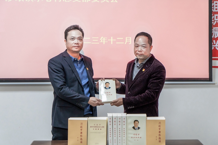 隨后,肖炳璋一行來到沙瑯鎮(zhèn)水心村進(jìn)行實(shí)地調(diào)研。鎮(zhèn)委副書記賴水寅表示,在茂名港集團(tuán)的極力幫扶下,水心村的黨員干部發(fā)揮帶頭作用,全村上下一心,在產(chǎn)業(yè)興農(nóng)的項(xiàng)目上取得巨大的成效。肖炳璋表示,集團(tuán)高度重視沙瑯鎮(zhèn)的幫扶項(xiàng)目,并對(duì)鎮(zhèn)領(lǐng)導(dǎo)、駐鎮(zhèn)工作隊(duì)成員所取得的工作成效表示祝賀,茂名港集團(tuán)將繼續(xù)予以大力支持,也希望駐鎮(zhèn)干部把鄉(xiāng)村振興工作做好做細(xì)。同時(shí),為了讓水心村精神文化水平能與項(xiàng)目建設(shè)同步高質(zhì)量發(fā)展,座談會(huì)結(jié)束后在黨建活動(dòng)室舉行贈(zèng)書儀式。