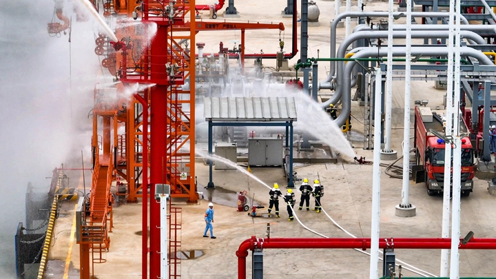 此次演練是集團(tuán)在博賀新港區(qū)投產(chǎn)前最接近實(shí)操的實(shí)戰(zhàn)演練,旨在提高企業(yè)處理泊位緊急事故的應(yīng)變和整體協(xié)調(diào)能力,提高應(yīng)急人員對(duì)泊位突發(fā)事故的應(yīng)急指揮、操作聯(lián)動(dòng)和救援水平。在各方的共同努力下,經(jīng)過1小時(shí)緊張有序的應(yīng)急處置,成功控制油料泄漏事故,圓滿完成演練任務(wù),標(biāo)志著博賀新港區(qū)油品碼頭和化工碼頭投產(chǎn)運(yùn)營工作已完成關(guān)鍵節(jié)點(diǎn)。 陳力表示,此次演練增強(qiáng)了轄區(qū)碼頭企業(yè)、船舶企業(yè)及相關(guān)單位的防污染意識(shí)和聯(lián)合作戰(zhàn)能力,有效落實(shí)了港口單位污染防治主體責(zé)任,將有力推動(dòng)港口運(yùn)輸生產(chǎn)和海洋環(huán)境保護(hù)協(xié)調(diào)發(fā)展。 李昱祺表示,本次演練充分展示了集團(tuán)下屬子公司在應(yīng)急指揮、操作聯(lián)動(dòng)和救援水平等方面的綜合管理能力,為后續(xù)投產(chǎn)運(yùn)營提供了寶貴經(jīng)驗(yàn)。下一步,集團(tuán)將繼續(xù)做好人員培訓(xùn)、常態(tài)化應(yīng)急演練等工作,進(jìn)一步提高協(xié)調(diào)作戰(zhàn)能力,為茂名港域平安港口建設(shè)貢獻(xiàn)力量。 此次演練還得到了茂名石化北山嶺消防中隊(duì)、廣東海安水運(yùn)技術(shù)服務(wù)有限公司、茂名昌利船舶有限公司、茂名眾和海上防污工程有限公司等單位的大力支持與協(xié)助。