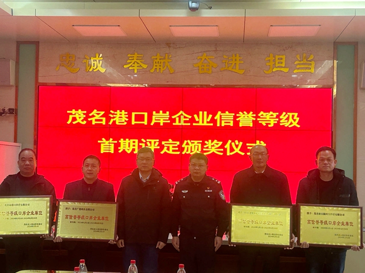 1月25日,口岸企業(yè)信譽(yù)等級(jí)評(píng)定暨口岸安全管控工作座談會(huì)在茂名出入境邊防檢查站隆重召開,集團(tuán)下屬企業(yè)茂名市港口經(jīng)營(yíng)有限公司榮獲茂名出入境邊防檢查站首批“高信譽(yù)等級(jí)口岸企業(yè)單位”!會(huì)上,茂名出入境邊防檢查站、茂名市商務(wù)局及茂名市各口岸企業(yè)一起共謀口岸經(jīng)濟(jì)發(fā)展之路,共商口岸安全管控之計(jì),并對(duì)茂名港口岸范圍評(píng)選出的首批四家高信譽(yù)等級(jí)口岸企業(yè)進(jìn)行了表彰。