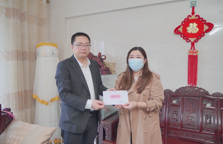 集團黨委委員、副總裁楊超燦帶隊到患病職工鄧嬋的家中進行慰問。期間與鄧嬋進行了親切的交談,詢問了她術后的身體情況、恢復進展,鼓勵她要樹立信心、保持樂觀向上的陽光心態(tài),囑咐她安心養(yǎng)病,并祝愿她早日康復!