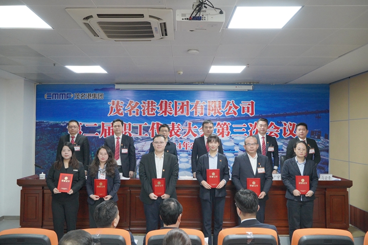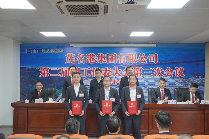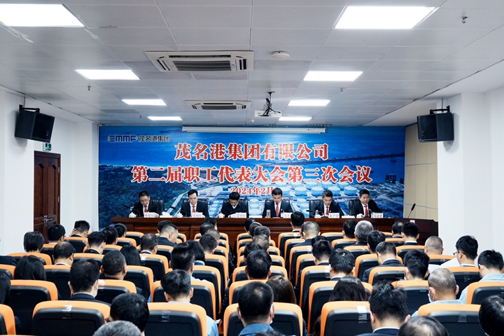2月29日,茂名港集團在五樓會議室隆重召開第二屆職工代表大會第三次會議。市國資委黨委書記、主任梁劍輝到會指導,集團黨委書記、董事長王志華出席并講話,集團黨委副書記、總裁肖炳璋作工作報告,集團工會主席馬云青主持會議。集團黨委副書記、常務副總裁朱廣宇,黨委委員、副總裁楊超燦,黨委委員、總工程師蔡光章,集團黨委委員、副總裁周成,副總裁李昱祺及集團職工代表89人出席了大會。