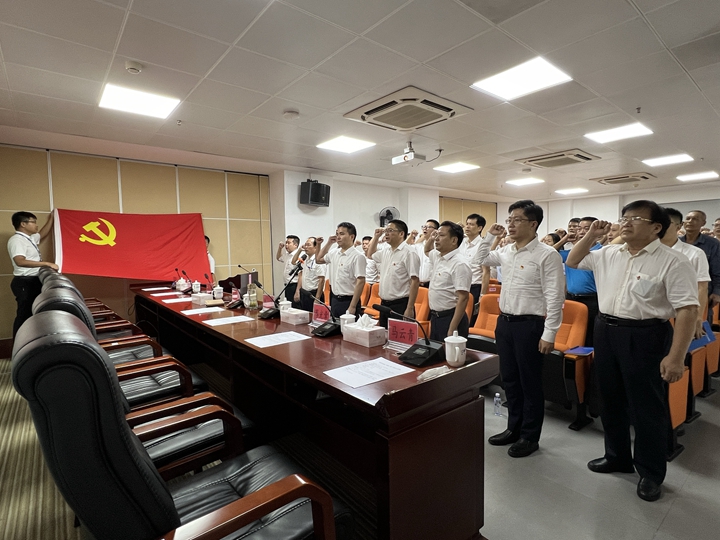 在表彰大會上,面對鮮紅的黨旗,全體黨員面向鮮艷的黨旗舉起右拳,莊嚴(yán)宣誓,回顧對黨和人民的承諾,進(jìn)一步錘煉對黨的絕對忠誠品格。