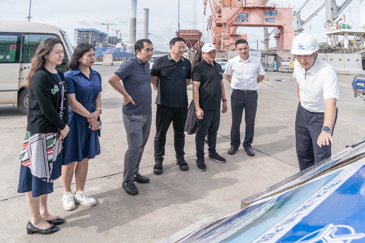 應(yīng)茂名港集團(tuán)邀請,2024年7月18日午后,全國人大代表李世平、劉炳、謝堅、區(qū)燕明、鐘麗琴、周斌、黃秀芬、周沖一行,在全國人大代表、茂名港集團(tuán)黨委書記兼董事長王志華的陪同下,蒞臨茂名港博賀新港區(qū)進(jìn)行深入調(diào)研。他們首先抵達(dá)東區(qū)油品化工泊位,茂名港集團(tuán)黨委委員、總工程師蔡光章詳細(xì)地向他們展示了茂名港口的蓬勃發(fā)展態(tài)勢,代表們借此機(jī)會深度洞察了茂名港的水深優(yōu)勢、科學(xué)的規(guī)劃布局、完善的集疏運體系,以及港產(chǎn)城融合發(fā)展的最新成果,同時也了解到當(dāng)前港口面臨的土地資源緊張的困境。