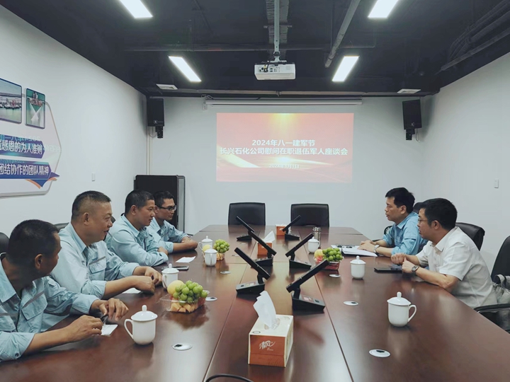長興石化公司開展“八一”慰問退役軍人活動(dòng)和“八一”建軍節(jié)茶話會(huì),為退役軍人送上組織的關(guān)心關(guān)愛,并致以節(jié)日問候與祝福。與會(huì)人員深情回顧了各自的軍旅生涯,并分享了退役轉(zhuǎn)業(yè)后在生活與工作中的寶貴經(jīng)驗(yàn)和深刻體會(huì)。大家紛紛表示,將繼續(xù)扎根本職崗位,為集團(tuán)發(fā)展貢獻(xiàn)自己的力量。