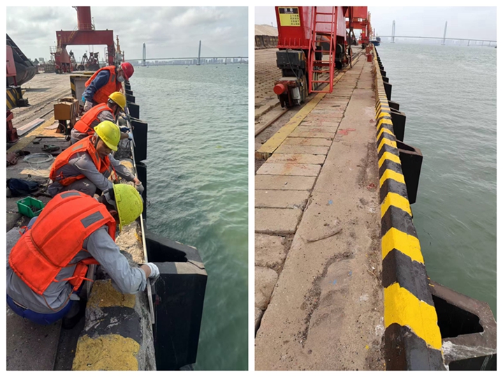在日常安全巡查中,發(fā)現(xiàn)港口經(jīng)營公司萬噸級(jí)碼頭前沿?cái)r水坎,出現(xiàn)局部混凝土損壞、鋼筋裸露的情況,若不及時(shí)修復(fù),將對(duì)海洋安全產(chǎn)生環(huán)境污染。按常規(guī)流程,該項(xiàng)修復(fù)工作費(fèi)用高、工期長且需外委專業(yè)施工隊(duì),但公司黨支部在“書記項(xiàng)目”推進(jìn)會(huì)上明確要求:“在確保安全與質(zhì)量的前提下,能自主完成的絕不外委!”港口經(jīng)營公司黨支部書記劉芳芳主動(dòng)領(lǐng)題,牽頭組織黨員干部,集結(jié)涵蓋結(jié)構(gòu)工程、機(jī)械維修、安全管理等專業(yè)的黨員技術(shù)骨干,把“硬骨頭”變成“練兵場(chǎng)”。 “攔水坎修復(fù)要兼顧船舶靠泊時(shí)產(chǎn)生的擠壓碰撞力,混凝土配比、鋼筋加固都得精準(zhǔn)。”黨支部組織委員、副總經(jīng)理黎陽生是港口經(jīng)營公司技術(shù)“總工程師”,他帶著黨員維修組白天測(cè)量損壞面積、記錄鋼筋變形數(shù)據(jù),晚上研究修復(fù)技術(shù)規(guī)范,反復(fù)驗(yàn)算修復(fù)方案。為節(jié)省成本,他們翻遍倉庫“淘”出閑置的高強(qiáng)度螺紋鋼,自主切割焊接;利用碼頭現(xiàn)有的混凝土攪拌設(shè)備,按實(shí)驗(yàn)配比調(diào)配修補(bǔ)材料,經(jīng)過多次試驗(yàn),最終確定“基層清理+鋼筋網(wǎng)加固+分層澆筑+防水警示涂層”的修復(fù)工藝。