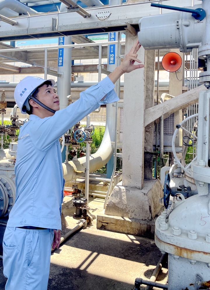 2024年是碼頭和庫(kù)區(qū)的重要?dú)v史節(jié)點(diǎn),何雄勝同志以“全天候”“無(wú)休息”的戰(zhàn)斗姿態(tài)沖鋒在前。油氣回收系統(tǒng)投用前,他連續(xù)堅(jiān)守崗位,精準(zhǔn)指導(dǎo)水沖洗、吹掃、氣密等關(guān)鍵工序,細(xì)致核查涉及液氮深冷工序等危險(xiǎn)工藝的300余個(gè)法蘭點(diǎn)!把b置運(yùn)行不容疏忽,必須把安全放在首位!”這是他堅(jiān)守的信念。正是這份黨員的極致嚴(yán)謹(jǐn),確保了裝置一次性成功聯(lián)調(diào),運(yùn)行指標(biāo)符合設(shè)計(jì)規(guī)范。他還指導(dǎo)用分析儀等設(shè)備精確測(cè)試不同工況能耗,為節(jié)能降耗打下了堅(jiān)實(shí)基礎(chǔ)。面對(duì)首次卸船、裝船、茂石化長(zhǎng)輸管線(xiàn)進(jìn)罐等多項(xiàng)艱巨任務(wù)的圓滿(mǎn)完成,油污滿(mǎn)面也難掩他臉上的欣慰:“這就是黨員應(yīng)有的‘進(jìn)度條’!”